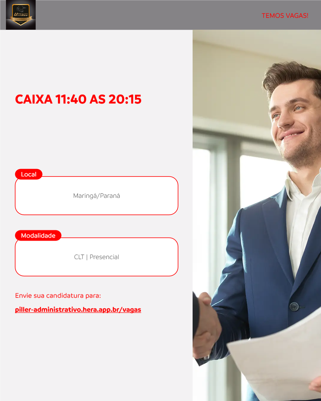 -Desejável experiência anterior com operação de caixa ou atendimento ao público.