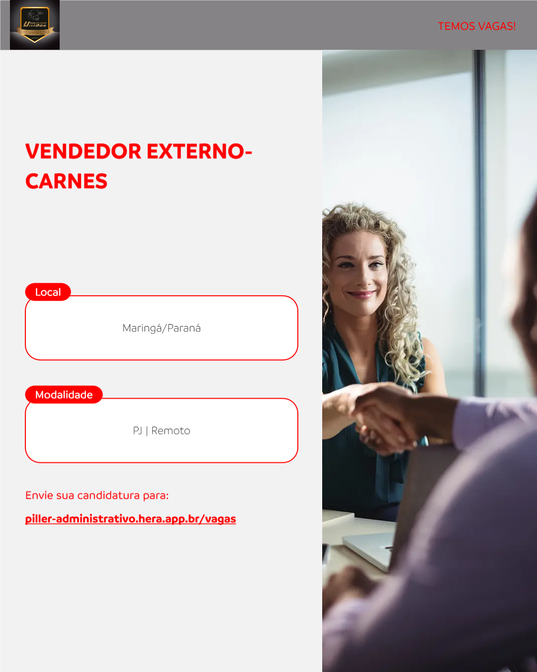Buscamos um profissional motivado, com perfil comercial, que goste de trabalhar em campo e com foco em resultados.